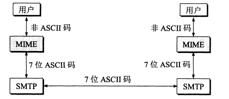 SMTP 只能发送 ASCII 码,而互联网邮件扩充 MIME 可以发送二进制文件。MIME 并没有改动或者取代 SMTP,而是增加邮件主体的结构,定义了非 ASCII 码的编码规则。