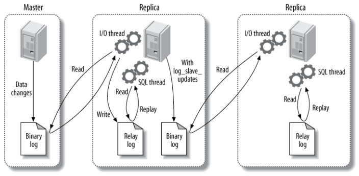 主要涉及三个线程:binlog 线程、I/O 线程和 SQL 线程。