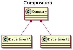 和聚合不同,组合中整体和部分是强依赖的,整体不存在了部分也不存在了。比如公司和部门,公司没了部门就不存在了。但是公司和员工就属于聚合关系了,因为公司没了员工还在。