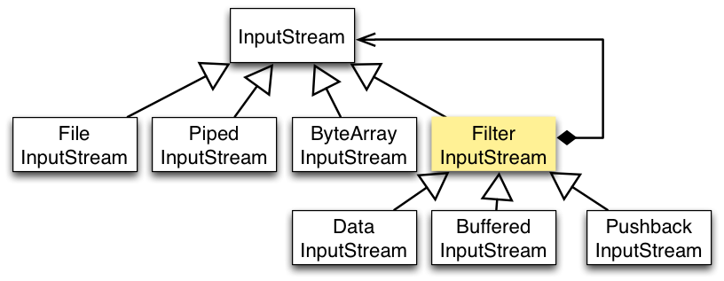 面向流的 I/O 一次处理一个字节数据:一个输入流产生一个字节数据,一个输出流消费一个字节数据。为流式数据创建过滤器非常容易,链接几个过滤器,以便每个过滤器只负责复杂处理机制的一部分。不利的一面是,面向流的 I/O 通常相当慢。